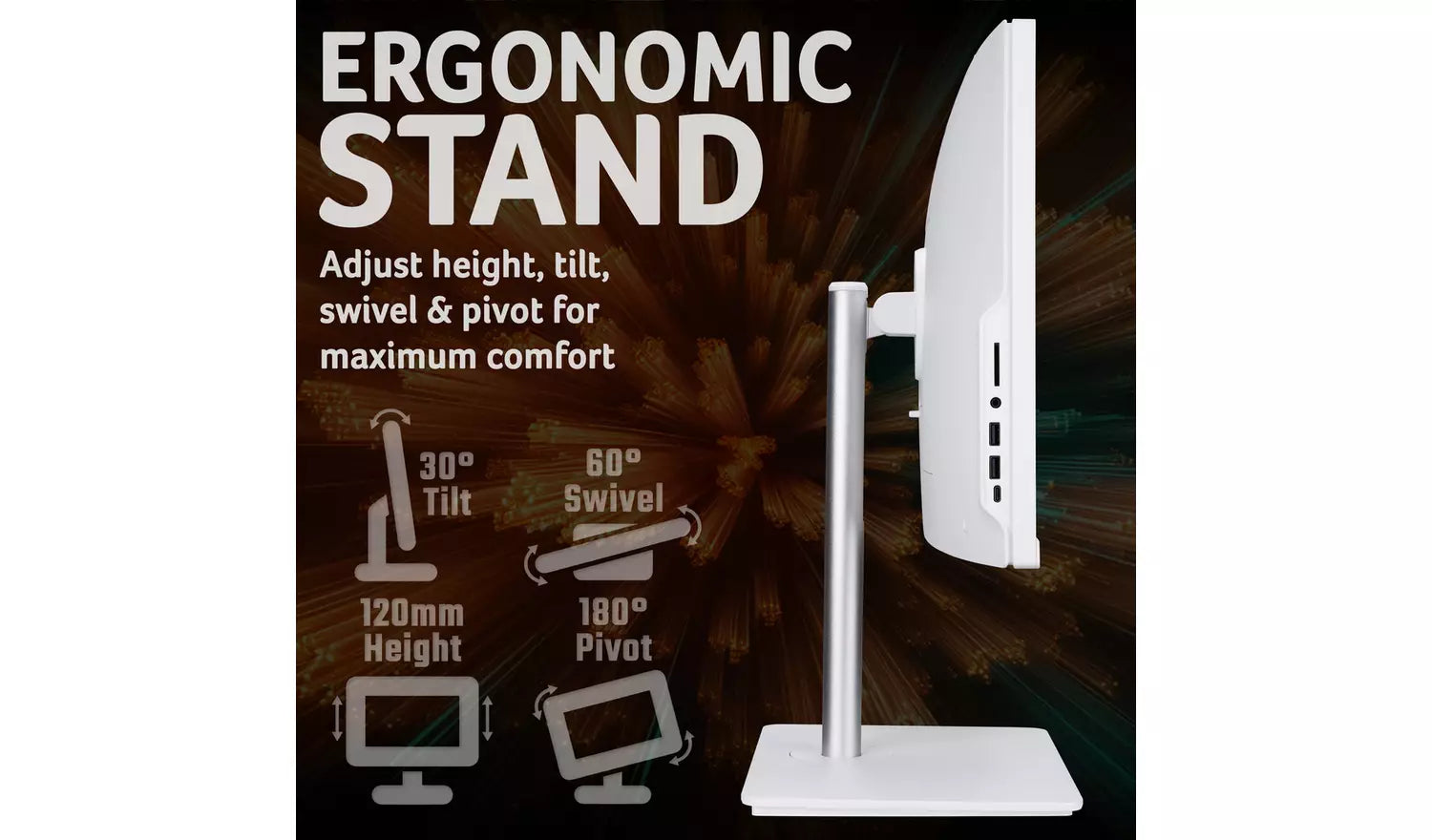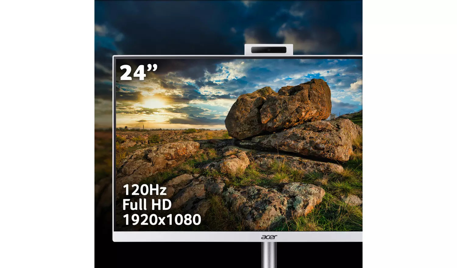 Enjoy crystal-clear visuals on a 23.8-inch Full HD IPS display that offers sharp detail, rich colours and a fast 120Hz refresh rate. Whether you're watching films, editing photos or scrolling through content, the smooth motion and vibrant image quality create a more immersive viewing experience.