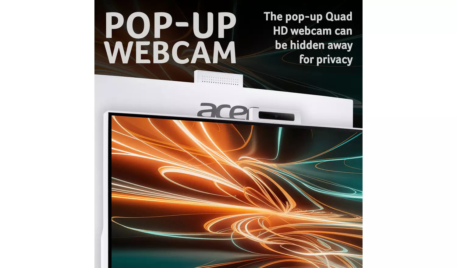 The Acer C24-A stands out with thoughtful additions designed for modern living. The 5MP pop-up webcam ensures privacy when not in use and delivers excellent clarity for meetings. A motion-sensor light adds convenience, automatically adjusting brightness around your workspace. The ergonomic stand gives you full control over your viewing angle with tilt, height, swivel and pivot adjustments.