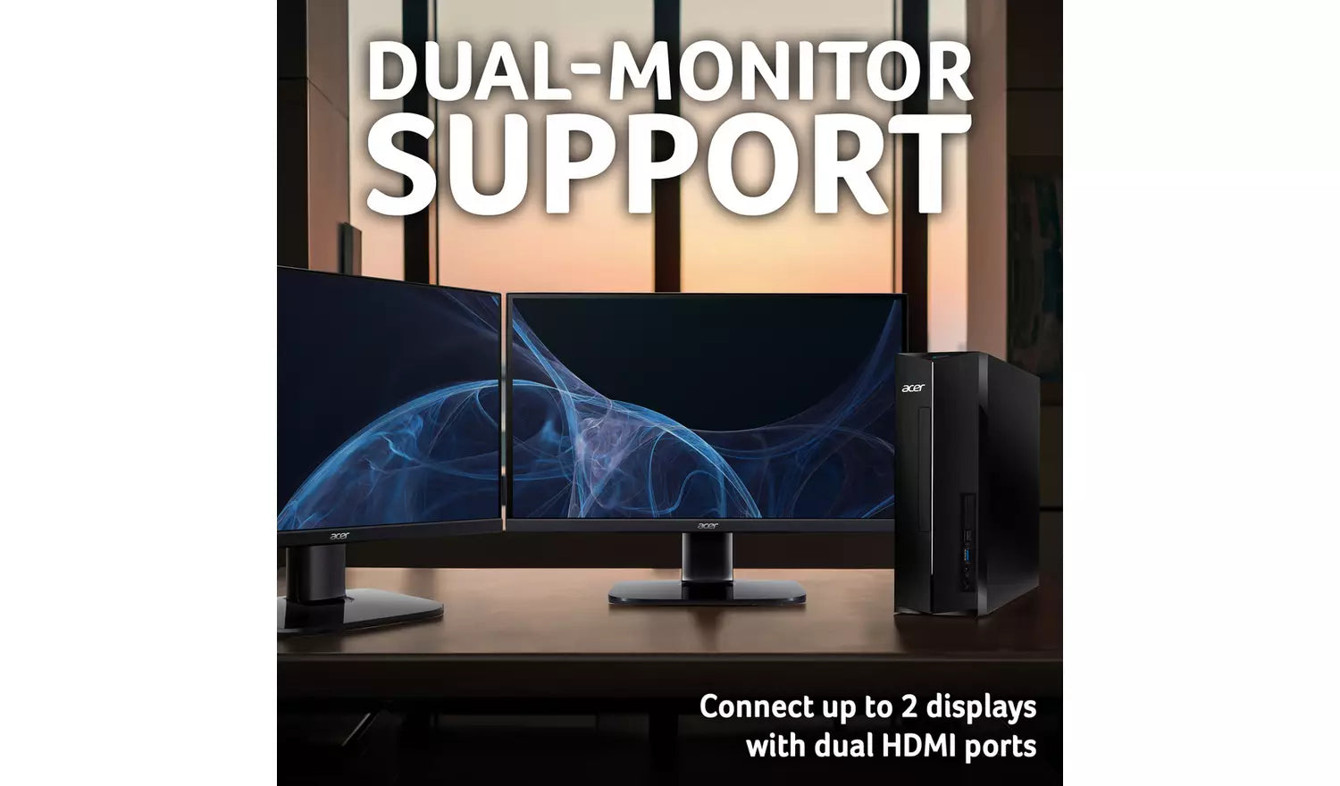 Upgrade your home or office setup with the Acer XC-1710 i3 8GB 256GB Desktop PC and 24 inch Monitor Bundle, a complete all-in-one workstation designed to deliver fast performance, smooth visuals and effortless everyday computing. This compact desktop and high-refresh display combination is perfect for families, students and professionals across the UK looking for reliable power and space-saving simplicity.