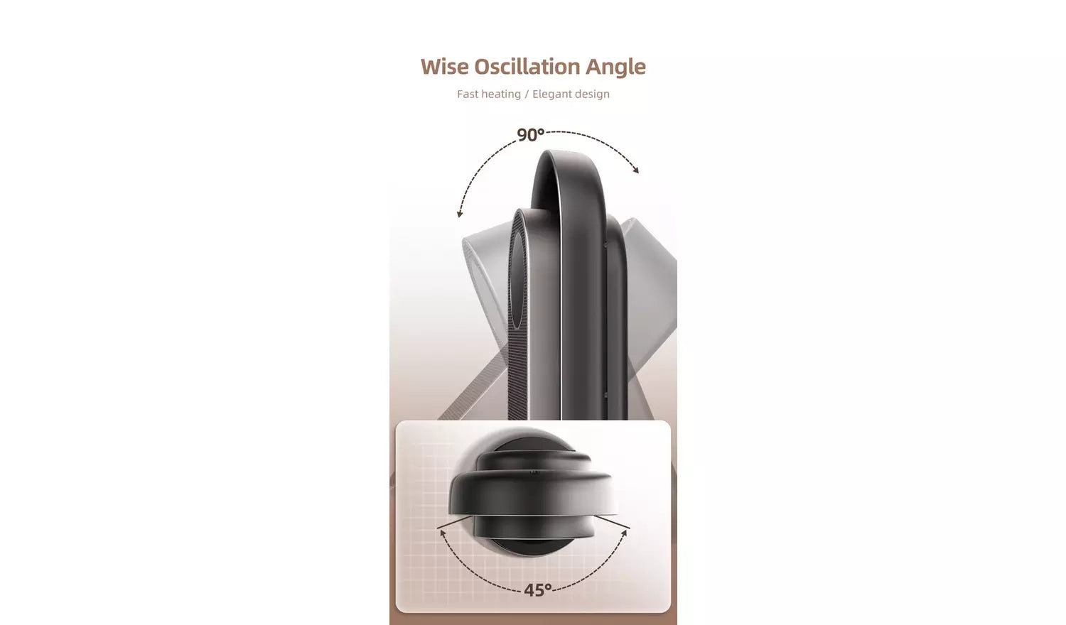 Enjoy consistent warmth throughout the room thanks to both horizontal oscillation up to 90 degrees and vertical oscillation up to 45 degrees. This dual movement ensures heat is spread evenly, eliminating cold spots and improving overall efficiency.