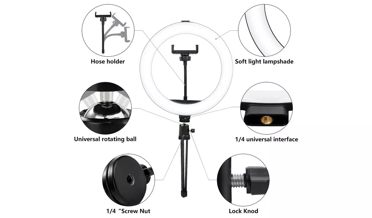 - Product: Desk Ring Light With Tripod & Phone Holder