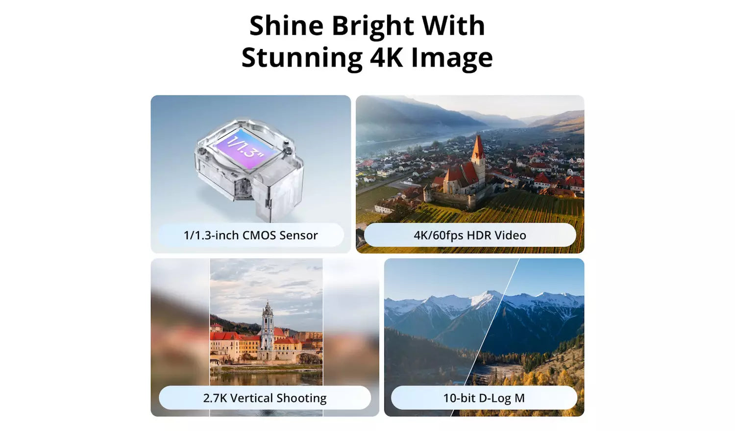 Unleash your creativity with six intelligent shooting modes that automatically generate dynamic angles and smooth movements. From cinematic flyovers to orbit style shots, these smart features help you create engaging footage effortlessly, even if you are new to drones.