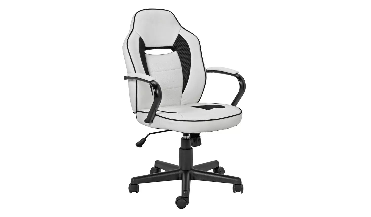 Home Faux Leather Mid Back Gaming Chair -White & Black