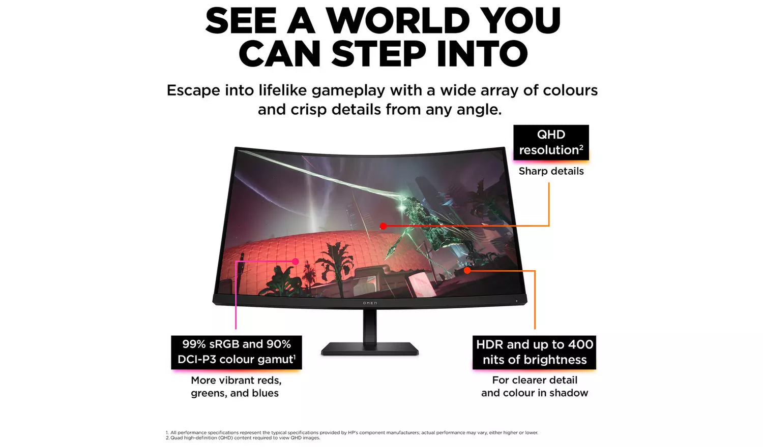 Transform your gaming setup with the HP Omen 31.5 Inch 165Hz QHD Gaming Monitor from The G Quest. Add to cart today for an immersive curved display with fast UK delivery and unbeatable performance.