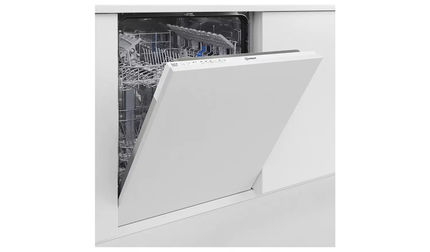 The Indesit D2IHL326UK is fully integrated, allowing it to sit neatly behind your kitchen cabinet door for a seamless and stylish finish. Its clean white interior and electronic digital controls ensure modern functionality while remaining discreet within your fitted kitchen.