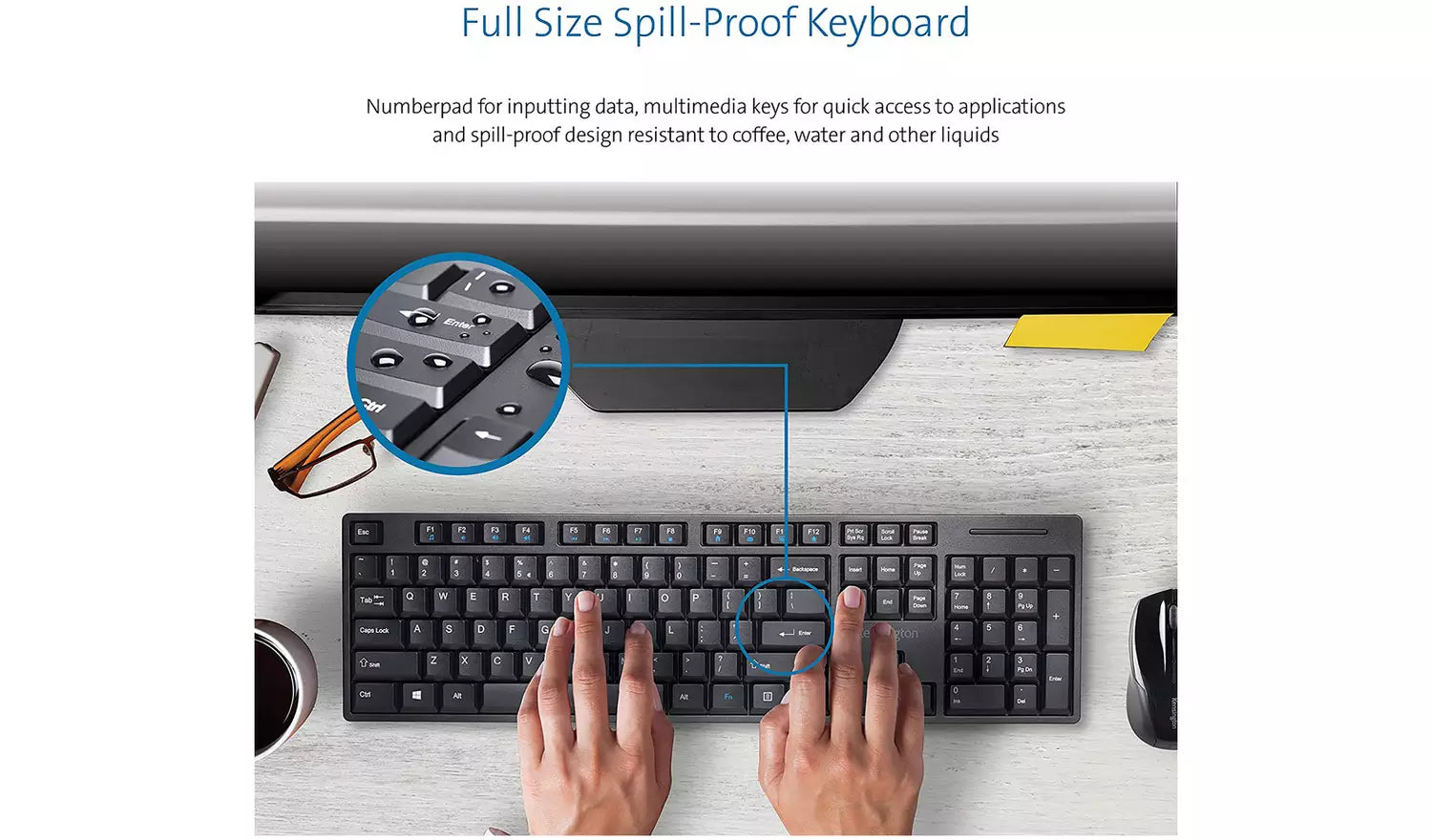 Accidents happen, but the spill-resistant keyboard design helps protect your investment. Whether you are working long hours or managing a fast-paced office environment, the durable construction ensures reliable performance day after day. Plug and play USB connectivity means you can get started instantly without complicated installation.