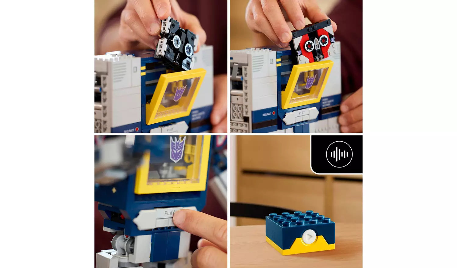 Bring Soundwave to life by pressing the built-in play button to activate voice and sound effects. This unique interactive feature elevates the model beyond a standard display piece, making it a standout LEGO Icons set for adult collectors and Transformers fans alike.