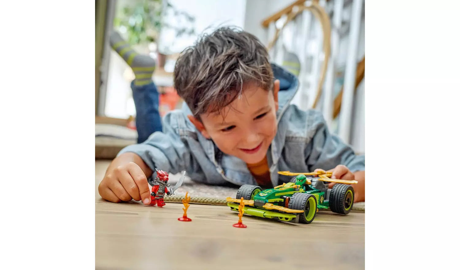 The striking green race car features four durable tyres, a detailed cockpit, and signature green lightning blade accents. Its bold design captures the spirit of Lloyd’s ninja power while offering a dynamic build that looks impressive on display or in action.