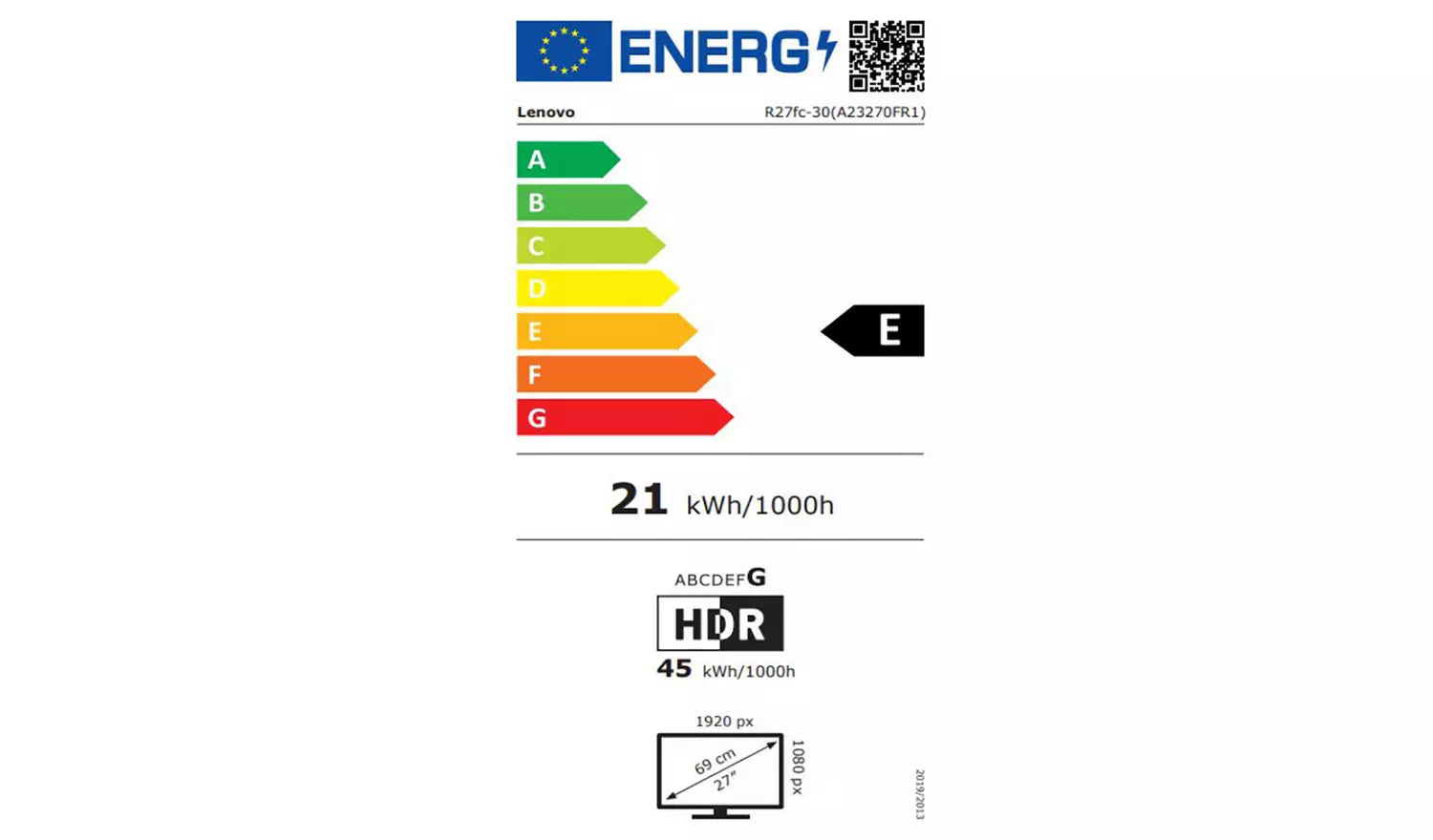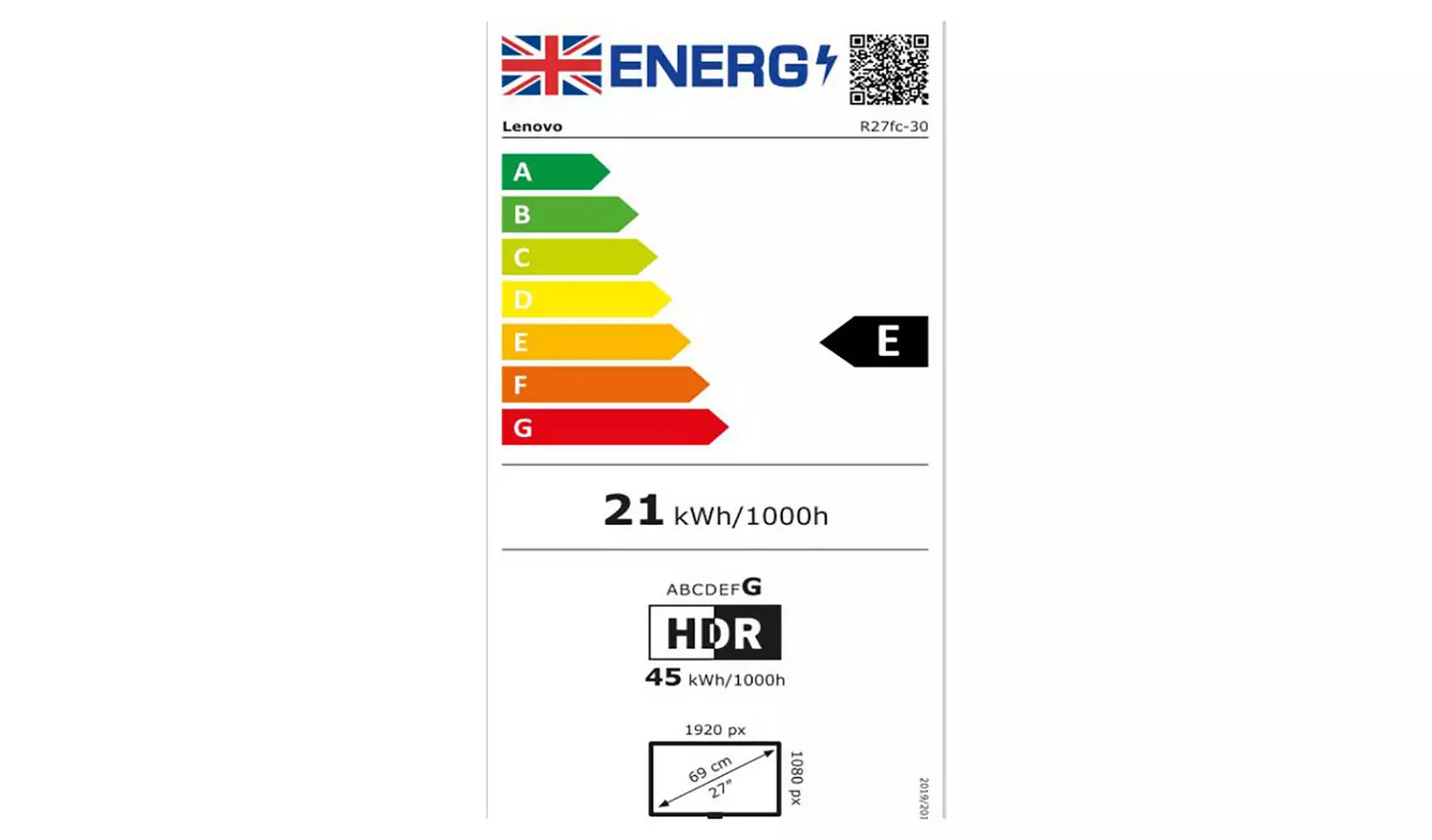 - Energy Rating: Class E, 21kWh per 1000h