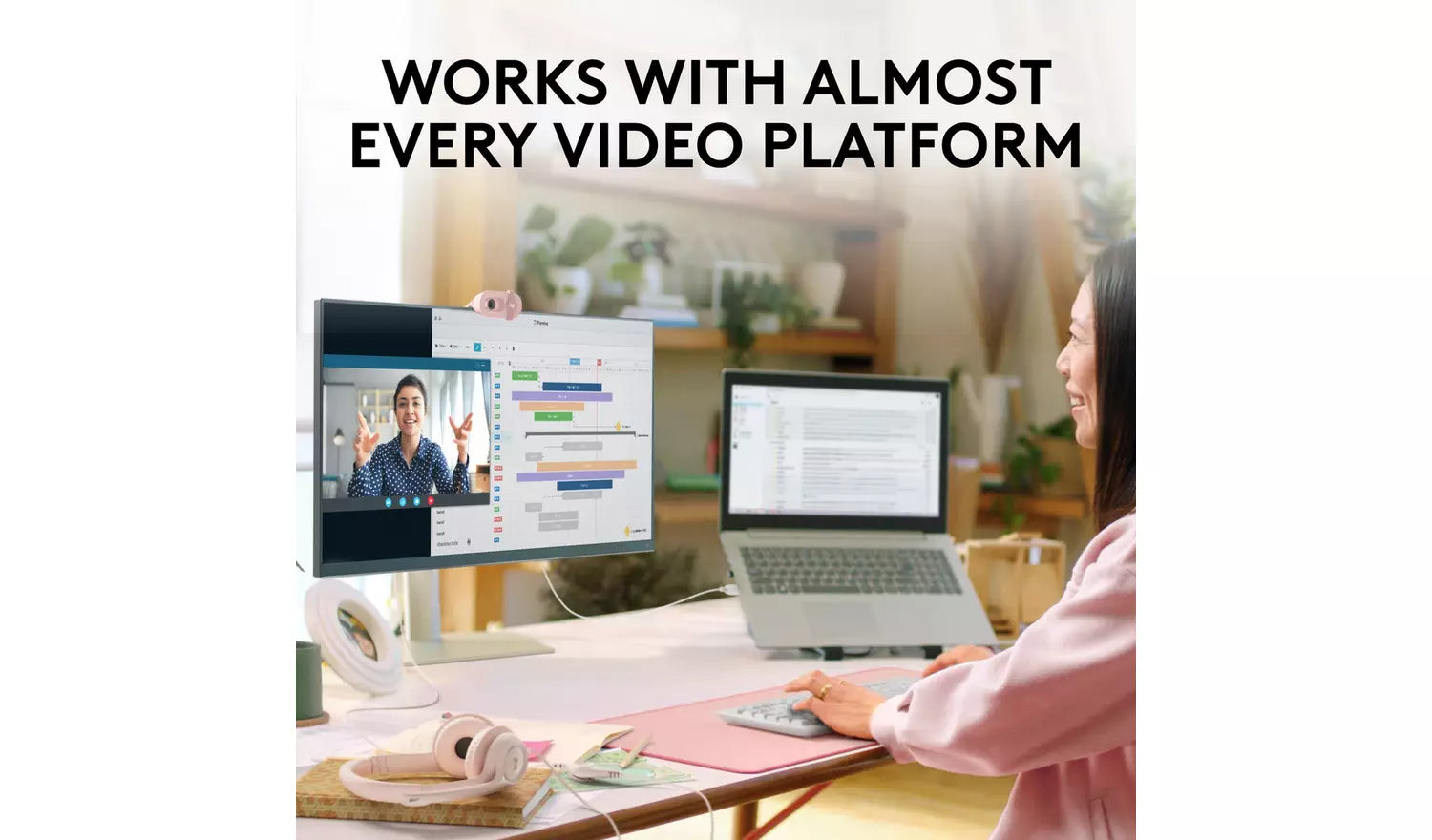 Finished in an elegant rose colour, this webcam adds a modern touch to your workspace. It is also made using a minimum of 34 percent post-consumer recycled plastic, making it a smart choice for eco-conscious users without compromising on performance.