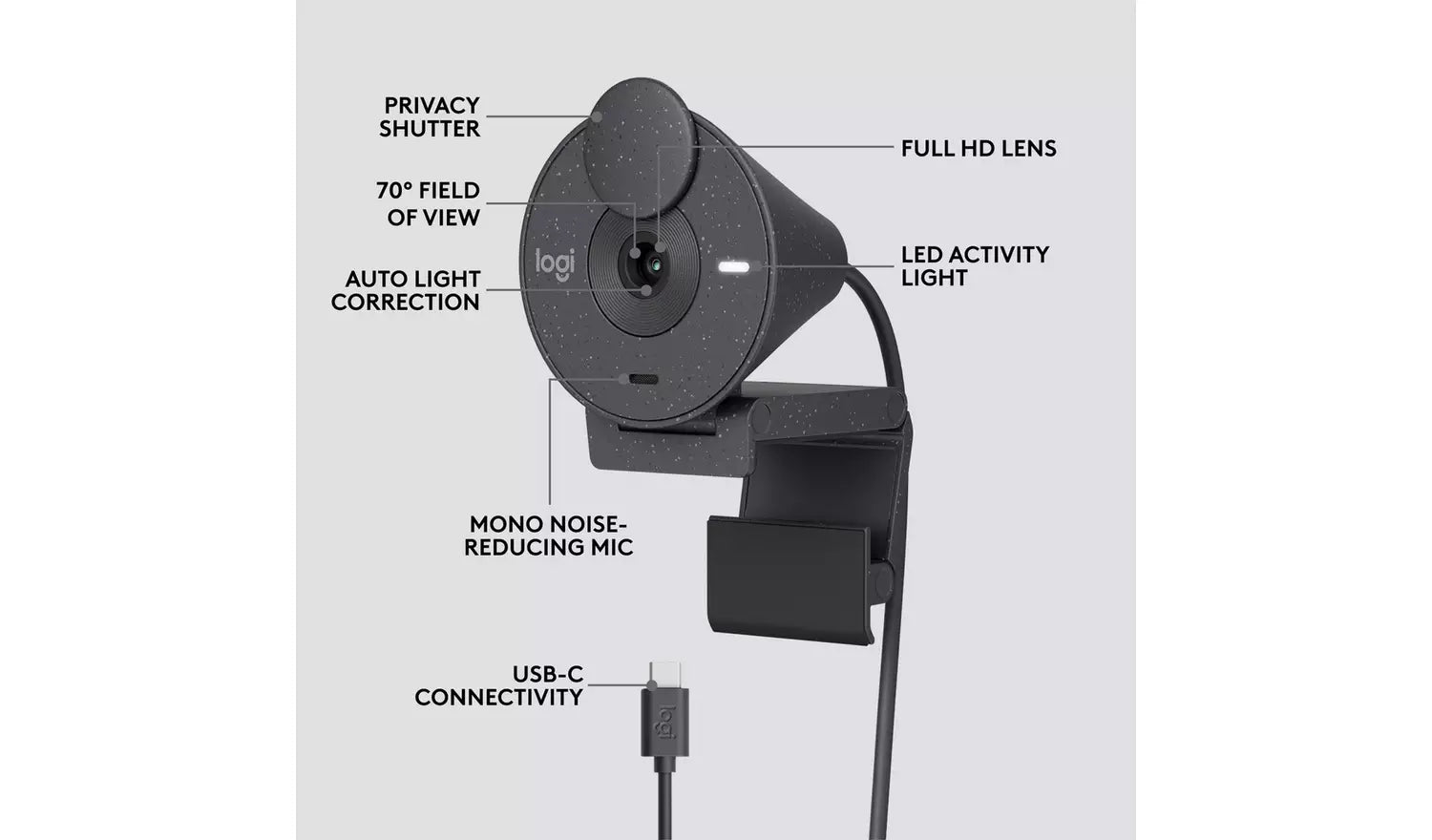 Certified for Microsoft Teams, Google Meet, and Zoom, the Brio 300 ensures smooth compatibility across all major platforms. The adjustable 70-degree rotation and universal mounting clip let you position the camera perfectly on any monitor or laptop.
