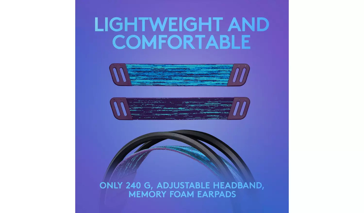 Designed at just 240 g, the G335 features a suspension headband with an adjustable elastic strap for a personalised fit. Soft memory foam ear pads wrapped in breathable sports mesh keep you comfortable during extended gaming nights, helping you stay focused without fatigue.