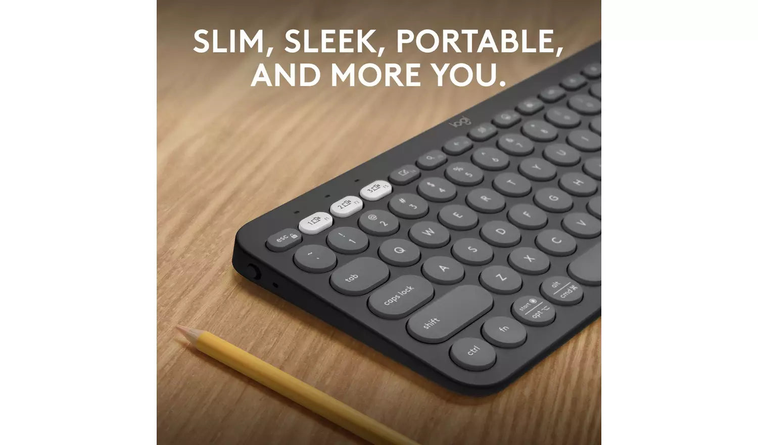The Logitech Pebble Keys 2 K380S stands out with its clean graphite finish and slim, lightweight build. Designed to complement contemporary workspaces, it fits effortlessly into home offices, university bags or hybrid work environments. Its compact layout helps save desk space while maintaining comfortable and accurate typing.