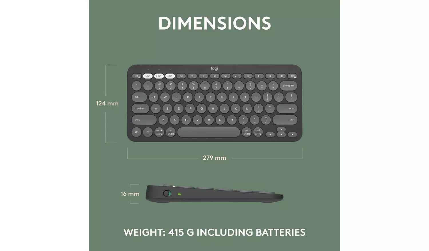 - Compact wireless keyboard in stylish graphite finish