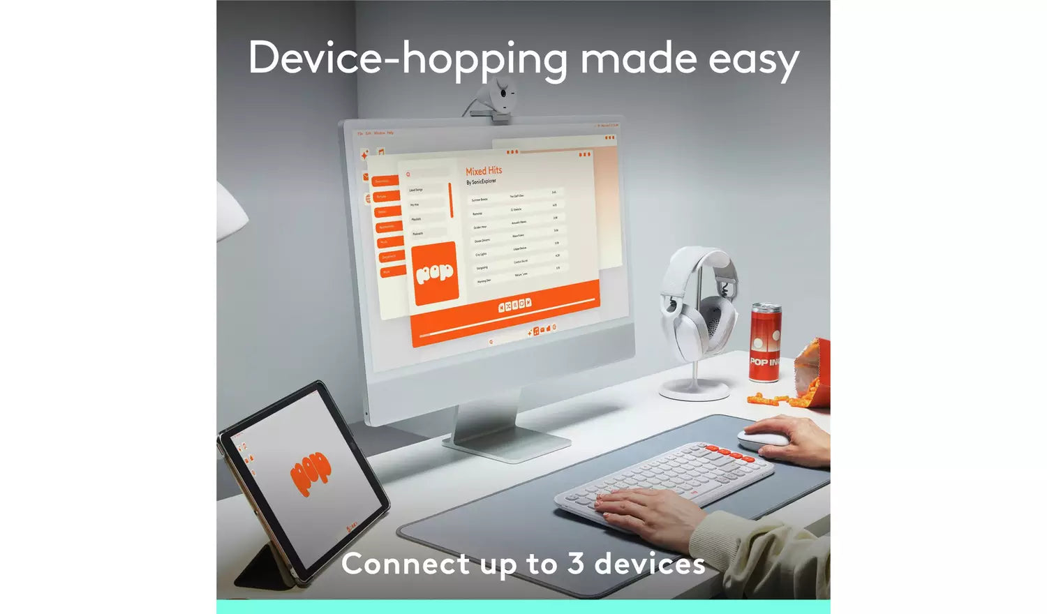 Designed for multitasking, the POP Icon Keys wireless keyboard lets you connect to up to three devices via Bluetooth. Easily switch between your laptop, tablet, or smartphone across different operating systems including Windows, macOS, iPadOS, iOS, and ChromeOS with a simple press of the Easy Switch buttons.