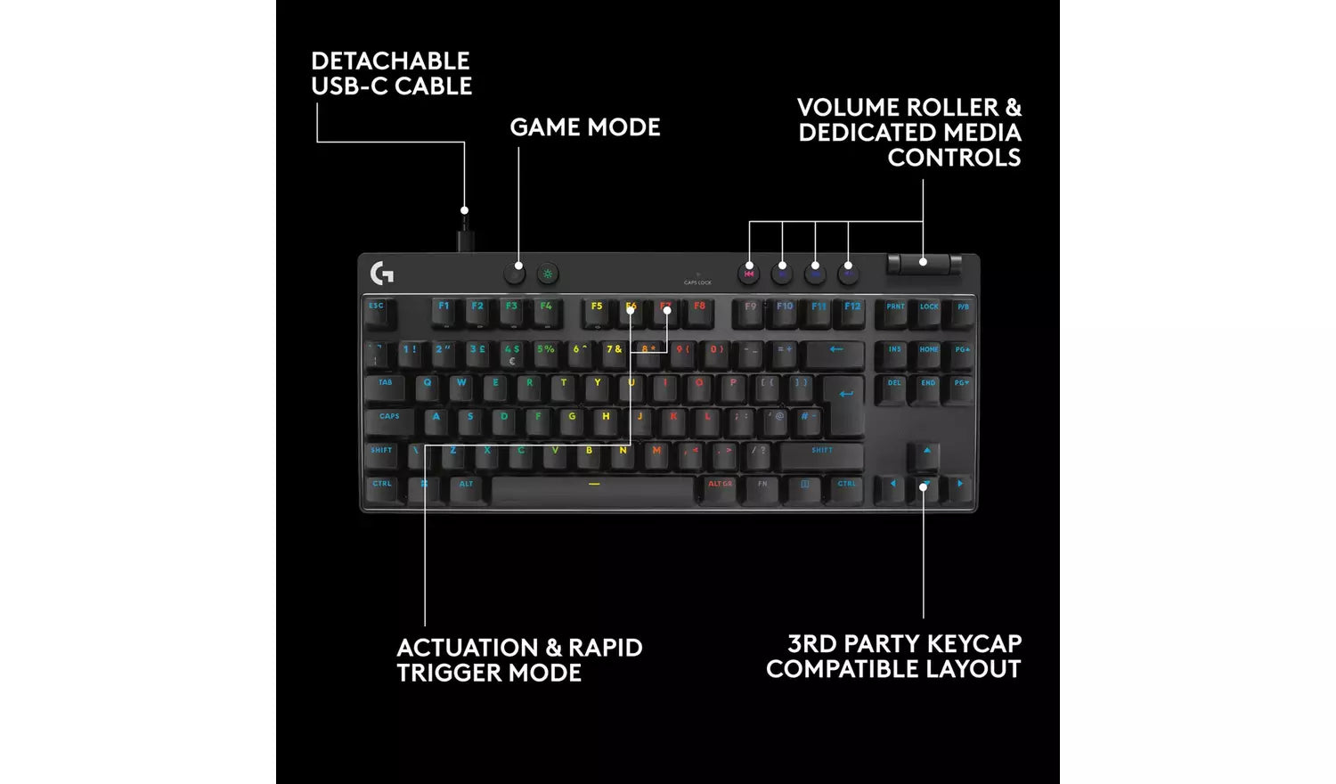 Logitech Pro X TKL RAPID Wired Gaming Keyboard - Black