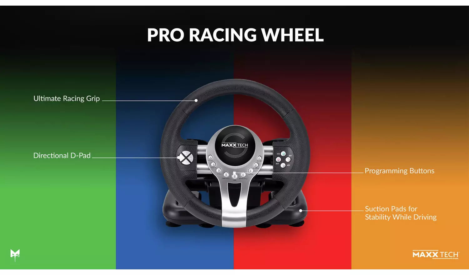 Maxx Tech Pro Racing Wheel Kit For PC, Xbox, PS4 & Switch