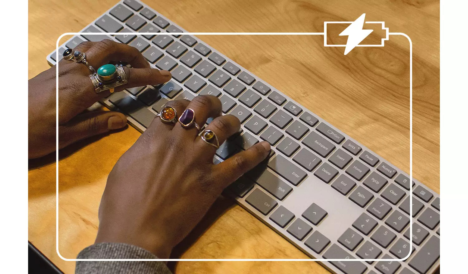 The Microsoft Surface Wireless Keyboard operates on a single AAA battery which is included in the box, so you can start working straight away. Quick wireless pairing keeps your desk free from cables while maintaining dependable performance throughout the day.