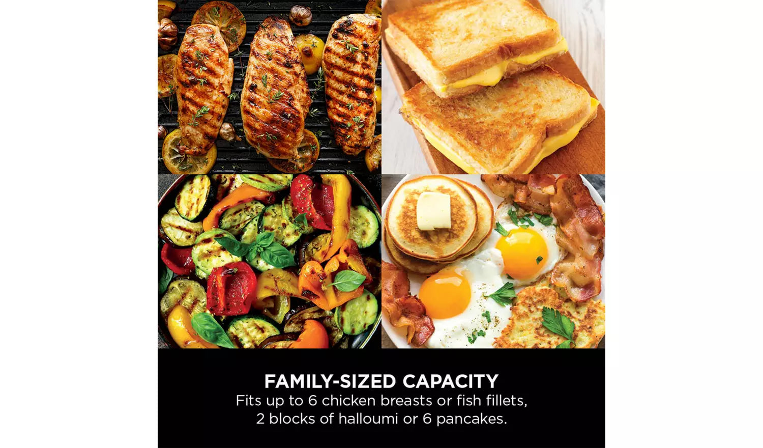 Switch effortlessly to the Flat Plate and unlock endless meal possibilities. From fluffy pancakes and crispy bacon to fajita vegetables, quesadillas and golden French toast, enjoy even edge-to-edge heating with no hot or cold spots, so every inch of the cooking surface works hard for you.
