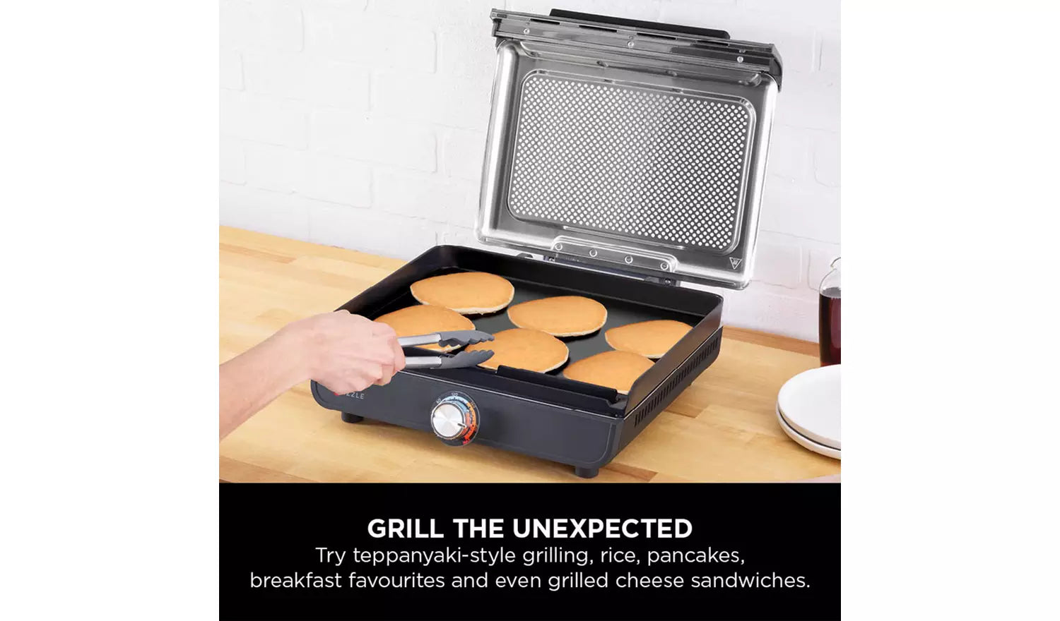 Designed with indoor cooking in mind, the Ninja GR101UK features a detachable perforated mesh lid that helps reduce smoke and splatter in your kitchen. Cook with the lid open for intense searing or closed to retain heat and melt toppings perfectly, ideal for grilled cheese and juicy meats.