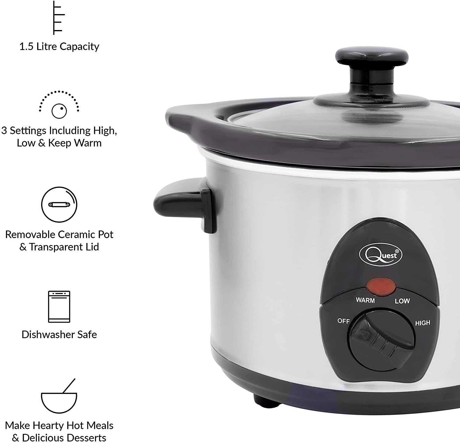 Quest 1.5 Litre Compact Slow Cooker Stainless Steel 35260