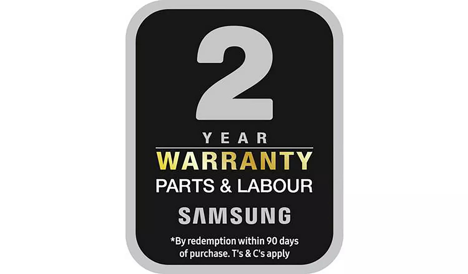 Built to last, this microwave comes with a 2-year Samsung warranty upon registration, offering added reassurance and dependable performance for everyday use.