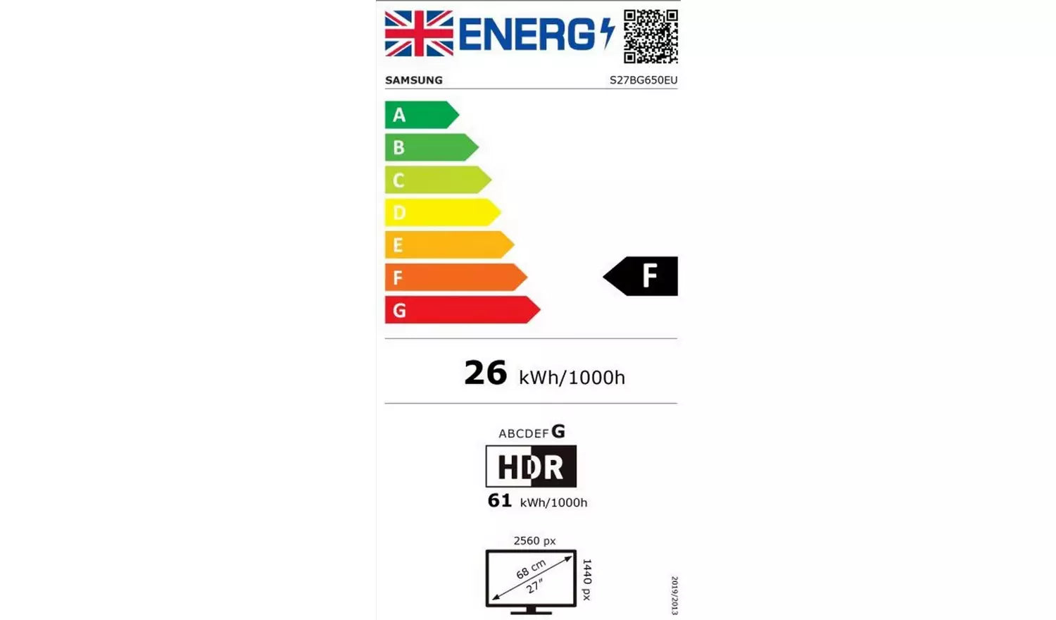 - Energy Class: F, 26kWh per 1000h