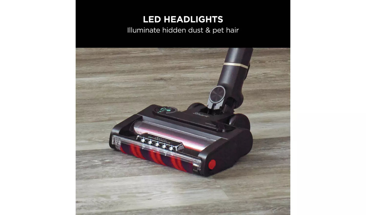 Clean Sense IQ technology automatically detects hidden dirt and increases suction power for deeper cleaning. This intelligent feature delivers up to 50 percent more dirt pick up compared to previous Shark eco mode models, helping maintain spotless floors throughout your home.