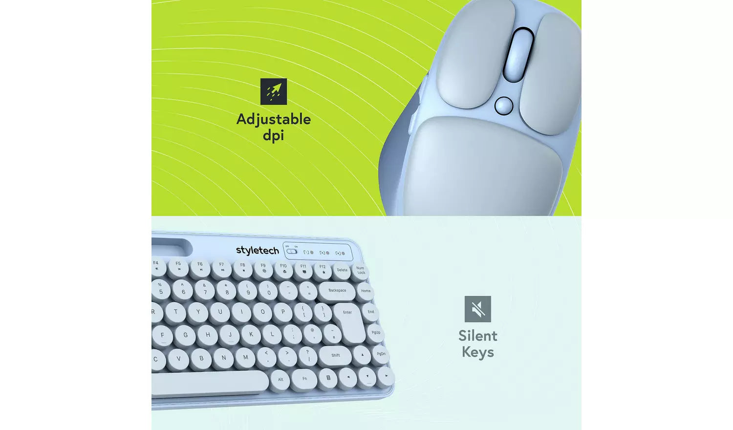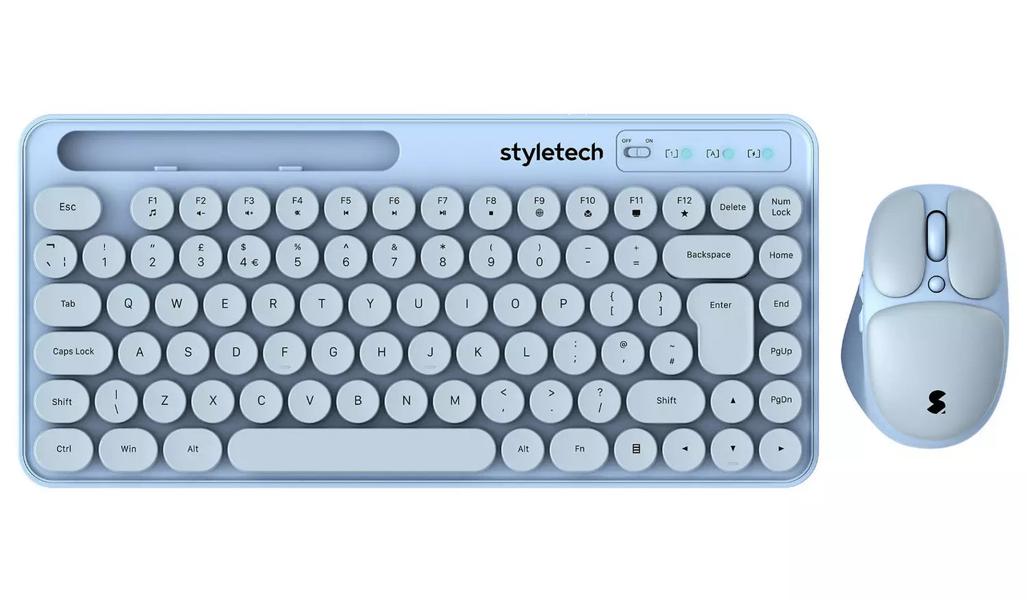 The Styletech MK520 stands out with its soft blue pastel finish, bringing a calm and modern look to your desk. Perfect for users who want their workspace to feel fresh and organised, this wireless keyboard and mouse bundle blends effortlessly into home offices, bedrooms, and shared environments.