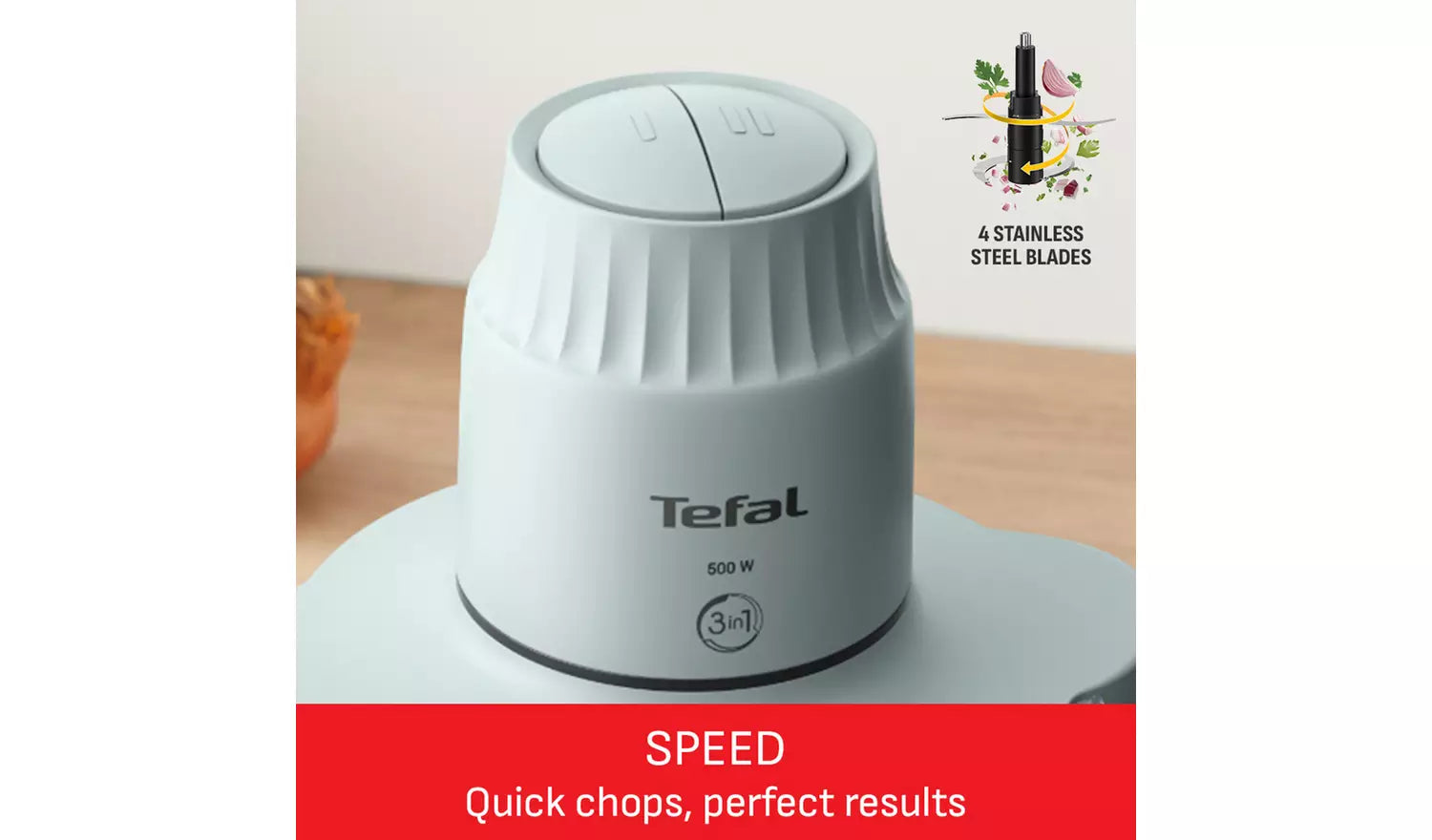 Finished in a fresh turquoise colour, the Choppeo XXL adds a pop of style to your kitchen worktop. Backed by Tefal’s trusted engineering and a 2-year guarantee, this chopper is built for durability, reliability, and long-lasting performance.