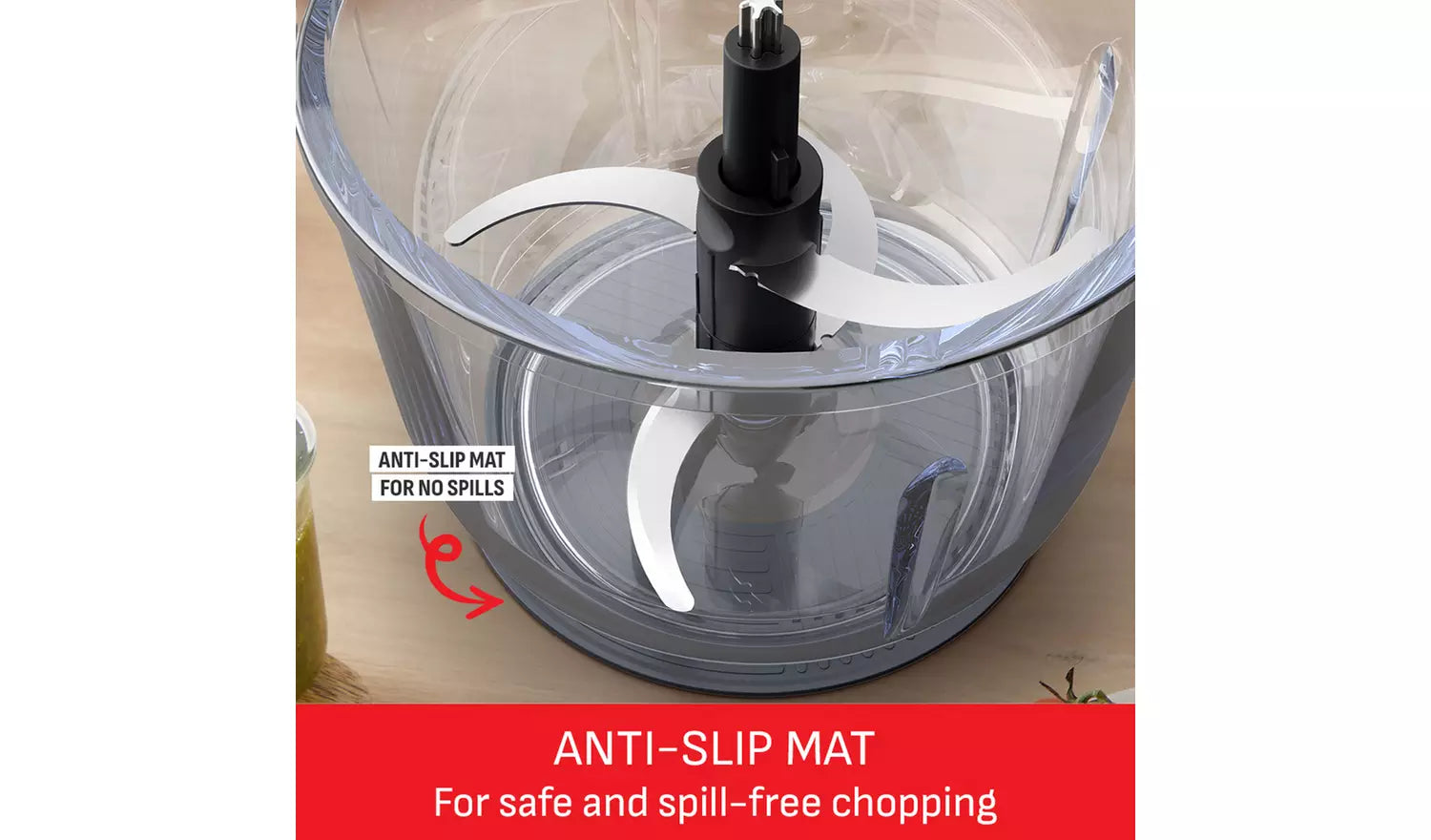Designed for everyday use, the removable blades and dishwasher-safe parts make clean-up effortless. An anti-slip pad keeps the unit stable during operation, while the included conservation lid allows you to store ingredients directly in the bowl, saving time and reducing mess.