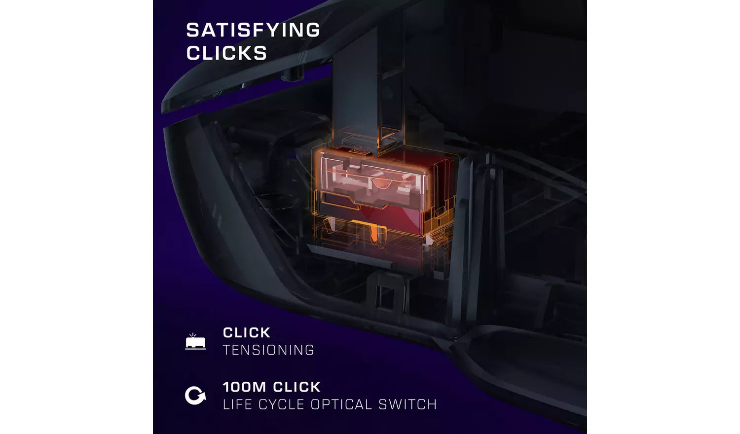 Titan Optical Switches deliver crisp, tactile clicks with lightning-fast response—engineered to withstand an incredible 100 million clicks. Paired with an accurate optical sensor and pre-tensioning system, every swipe, flick, and shot feels consistent and ultra-responsive.