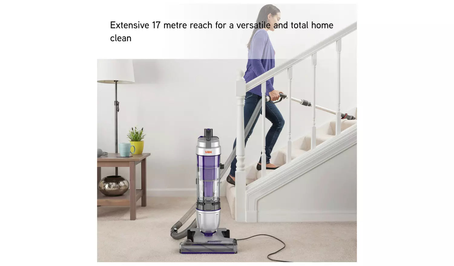 With an impressive total reach of up to 17 metres, combining a long 13 metre power cord and stretch hose, you can clean large areas without stopping to change plugs. Ideal for whole home cleaning, including stairs, hallways, and hard to reach spaces.