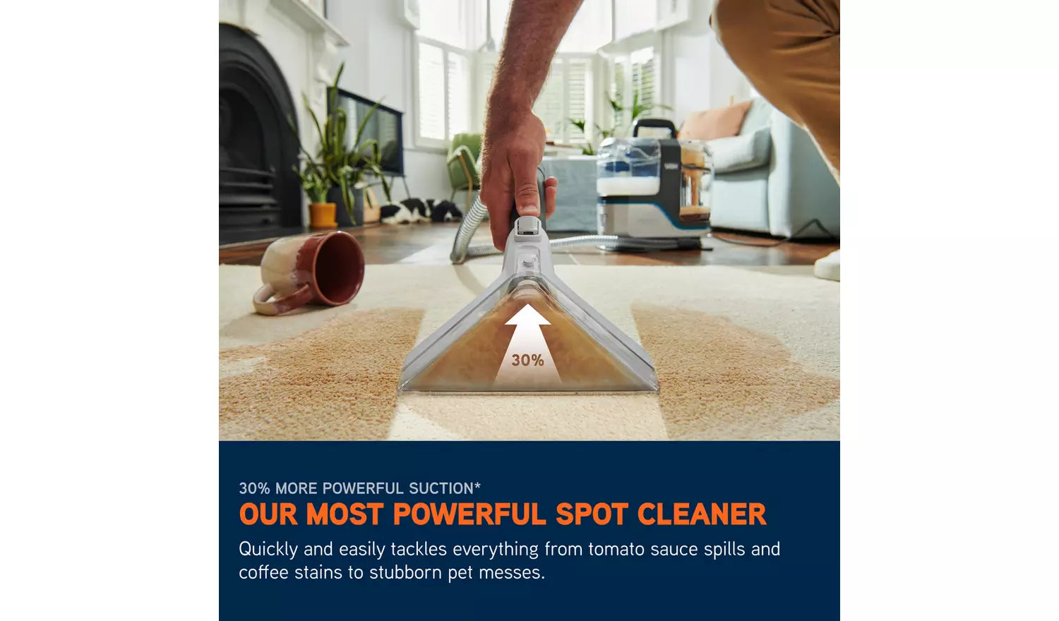 Built as Vax’s most powerful spot cleaner, the SpotWash Max Duo delivers 30% more suction power to lift deep-set dirt, food spills and pet accidents from carpets, upholstery and hard floors. From coffee stains and tomato sauce to muddy paw prints, this cleaner restores freshness fast with professional-level results.