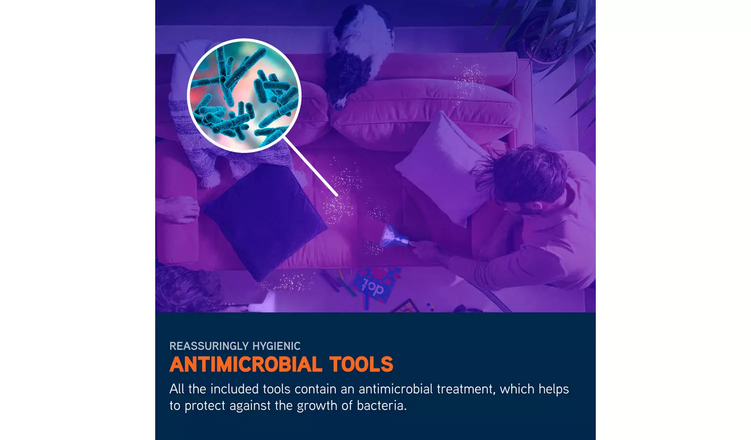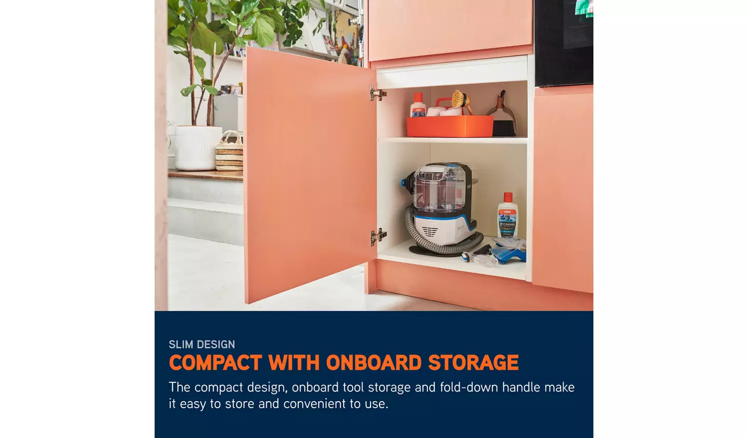 This spot cleaner includes a wide range of attachments to handle every cleaning challenge. The Wide Path Tool covers larger areas efficiently, the Messy Clean-Up Tool is perfect for pet accidents, and the Crevice Tool reaches tight spaces with ease. A 500ml antibacterial SpotWash solution is also included for hygienic cleaning.