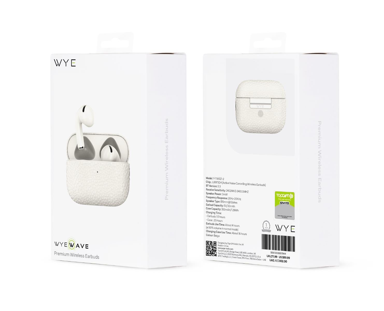 WYEWAVE Premium High Quality Wireless Earbuds With ANC - White